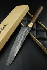 Blade: Hand forged damascus, 63 HRC, 215 mm
