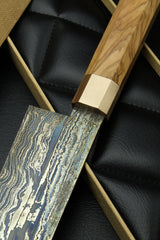 Blade: Hand forged damascus, 63 HRC, 180 mm
