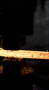 Like a spider's web, the veins of high-strength tool steel crisscross the blade, forming a framework for the numerous patterns and structures created by various forging processes to refine the material and shape a distinctive blade.