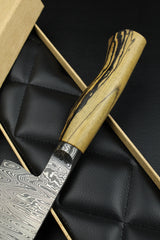 - Blade: Hand-forged damascus, 63 HRC, 210 mm