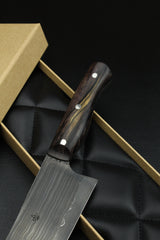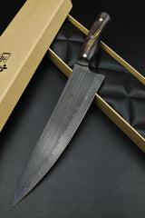 The Chef's Knife 240 B&B ebony stabilized is a traditional flat-blade knife.