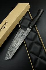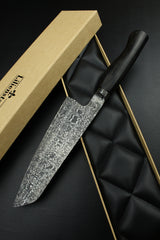 Blade: Hand-forged damascus, 63 HRC, 185 mm