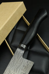 Blade: Hand-forged damascus, 63 HRC, 210 mm