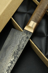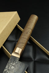 Blade: Hand forged damascus, 63 HRC, 215 mm