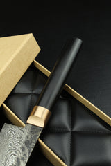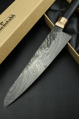 Blade: Hand forged damascus, 63 HRC, 215 mm