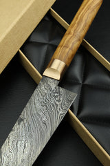Blade: Hand forged damascus, 63 HRC, 215 mm