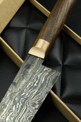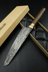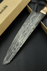 Blade: Hand forged damascus, 63 HRC, 215 mm