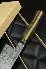 Blade: Hand forged damascus, 63 HRC, 220 mm