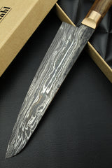 Blade: Hand forged damascus, 63 HRC, 215 mm