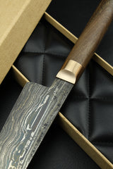 Blade: Hand forged damascus, 63 HRC, 215 mm