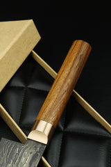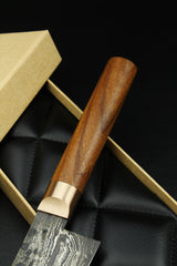 Blade: Hand-forged damascus, 63 HRC, 215mm.