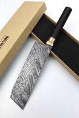 Blade: Hand forged damascus, 63 HRC,180 mm