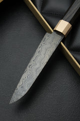 The transversely satinized tin bronze forms the core between blade and the East Style Oval handle designed as a real ferrule.