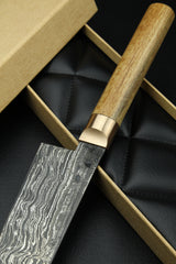 Blade: Hand forged damascus, 63 HRC, 180 mm