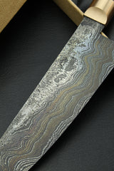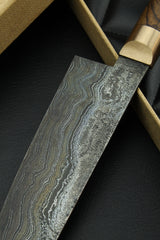Blade: Hand forged damascus, 63 HRC, 180 mm