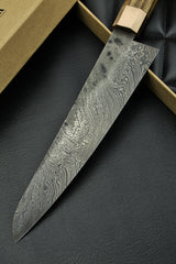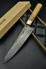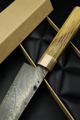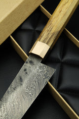 Blade: Hand-forged damascus, 63 HRC, 215mm.