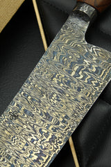The 270 layers of damask steel, manufactured in house, form the basis for this 190mm Nakiri.
