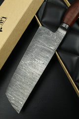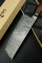 - Blade: Hand-forged damascus, 63 HRC, 190mm
