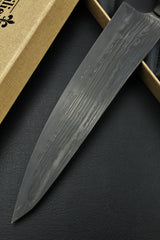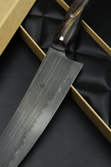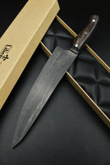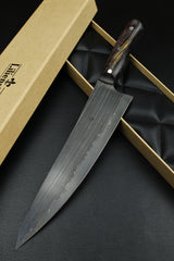 The Chef's Knife 240 B&B ebony stabilized is a traditional flat-blade knife.