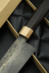 Damascus Santoku 320L Black Ebony Octagonal