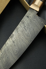 Blade: Hand forged damascus, 63 HRC, 180 mm