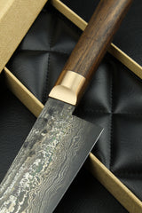 Blade: Hand forged damascus, 63 HRC, 215 mm