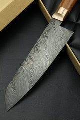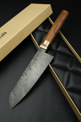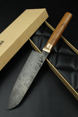 Blade: Hand-forged damascus, 63 HRC, 180mm.