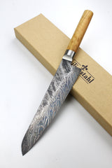 Blade: Hand forged damascus, 63 HRC, 215 mm