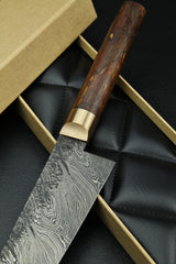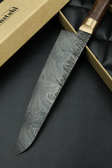 Blade: Hand forged damascus, 63 HRC, 215 mm