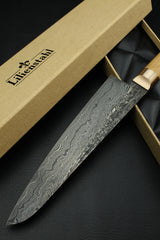 Blade: Hand forged damascus, 63 HRC, 215 mm