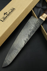 Blade: Hand forged damascus, 63 HRC, 215 mm