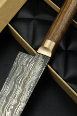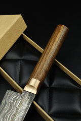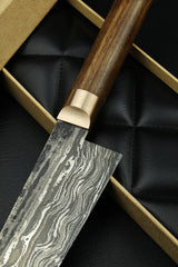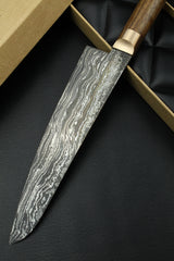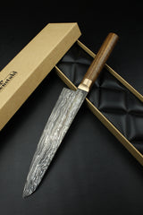 Blade: Hand forged damascus, 63 HRC, 215 mm