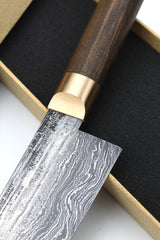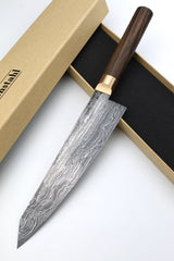 Blade: Hand forged damascus, 63 HRC, 215 mm