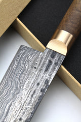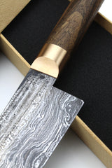 Blade: Hand forged damascus, 63 HRC, 215 mm