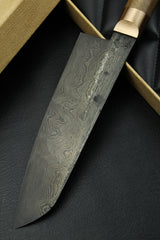 Blade: Hand forged damascus, 63 HRC, 180 mm