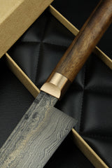 Blade: Hand forged damascus, 63 HRC, 180 mm
