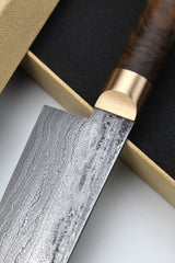 Blade: Hand forged damascus, 63 HRC, 215 mm
