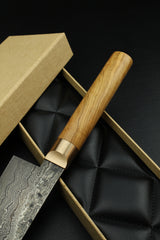 Blade: Hand forged damascus, 63 HRC, 180 mm