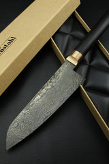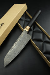 Damascus Santoku 500L Black Ebony Oval