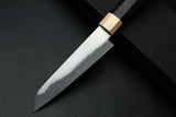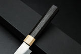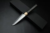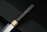 The transversely satinized tin bronze forms the core between the San Mai 3LN blade and the East Style Octagonal handle designed as a real ferrule.