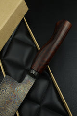 This Lilienstahl Santoku is forged out of a 320 layer Damascus-steel and finished with a snakewood handle.