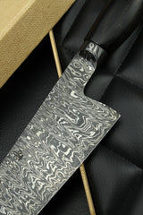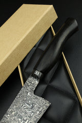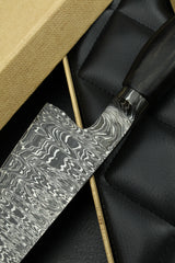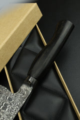 Blade: Hand-forged damascus, 63 HRC, 185 mm
